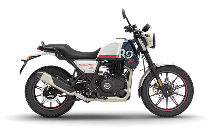 भारत में Royal Enfield Scram 440 Bike की शुरुआती एक्स-शोरूम कीमत 2.23 लाख रुपये है, टॉप वैरिएंट 2.30 लाख तक। यह Yezdi Scrambler और Triumph Scrambler 400X से मुकाबला करती है। 3 साल की स्टैंडर्ड वारंटी मिलती है। बिहार जैसे राज्यों में ऑन-रोड प्राइस 2.5 लाख से शुरू हो सकती है।